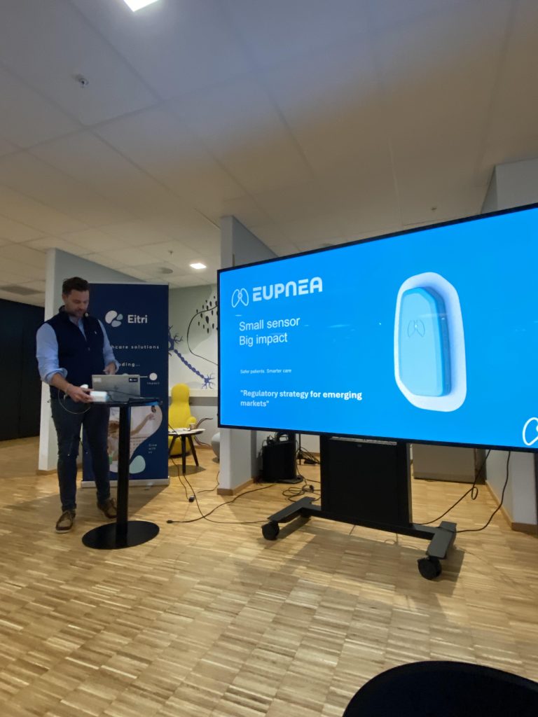 I løpet av perioden har vi fått være med på forskjellige møter og arrangementer, og møtt mange nye mennesker som jobber innen helseteknologi. Blant annet var jeg så heldig å få være med på Demoday Vestlandet, hvor bedrifter får presentere sine ideer og produkter for investorer. Vi har også vært med på workshop sammen med Eupneas mentorer fra NOME-programmet. Slike arenaer har vært utrolig nyttige for å se hvordan en innovasjonsbedrift posisjonerer seg, pitcher sin teknologi, og får tilbakemeldinger fra eksterne ressurser og eksperter. Gjennom disse møtene har jeg óg forstått hvor viktig nettverksbygging og mentorstøtte er i en oppstartsbedrift, særlig innen helserelatert teknologi, der risiko og regulering veier tungt.